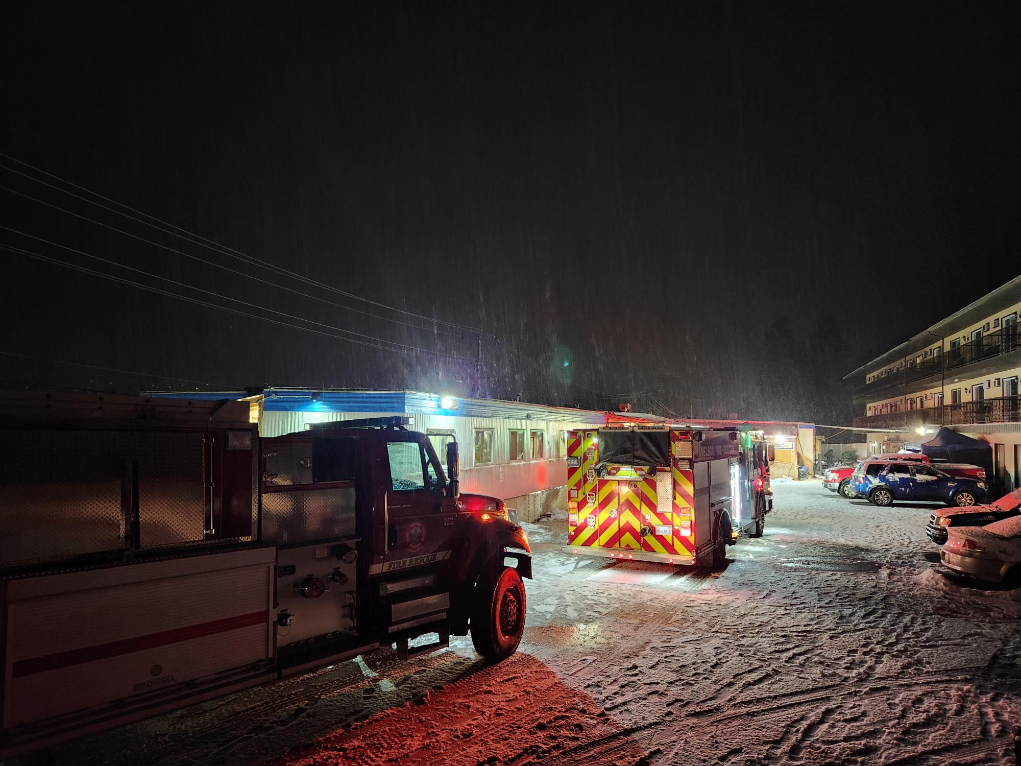 At 11:28 p.m. on Feb. 22, Nelson Fire and Rescue Services responded to a report of a structure fire on the 600 block of Hwy 3a, according to Nelson Fire Chief Jeff Hebert. He said all on duty members responded immediately, with six additional members responding from home.